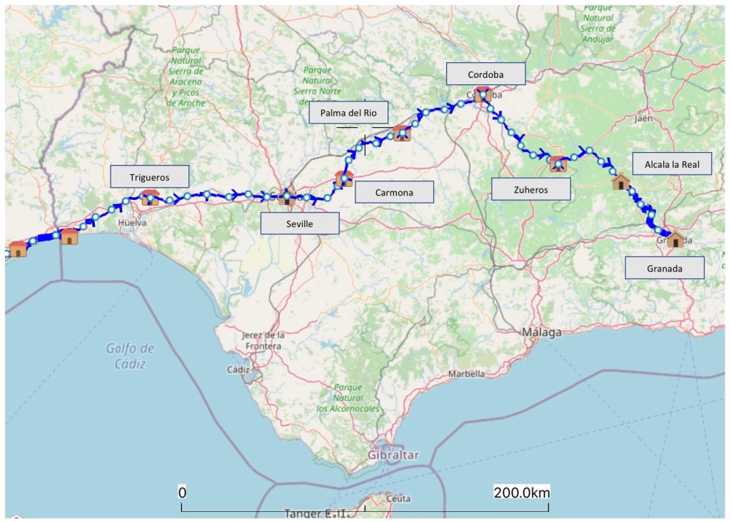 After the first day, Andy’s knee was sore, sore enough to hobble down the stairs. Not a good sign with well over 3000km still ahead! To ease it, he made some micro adjustments to his saddle position and increased his cadence (speed of pedal strokes) to cut down the force he had to press onto the pedals.