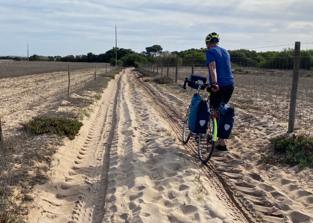 There were some familiar bike-touring experiences … diving down a muddy track on a dreadful detour, a stand up lunch outside a village convenience store, sheltering from a sharp shower under a tree.